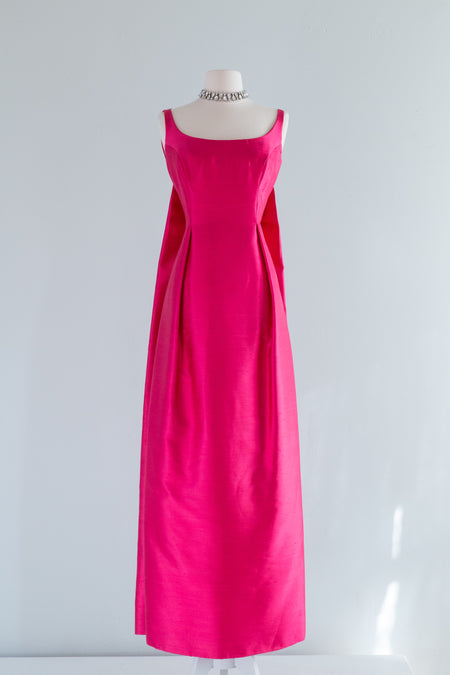 Stunning 1960's SHOCKING Pink Silk Evening Gown / Waist 30
