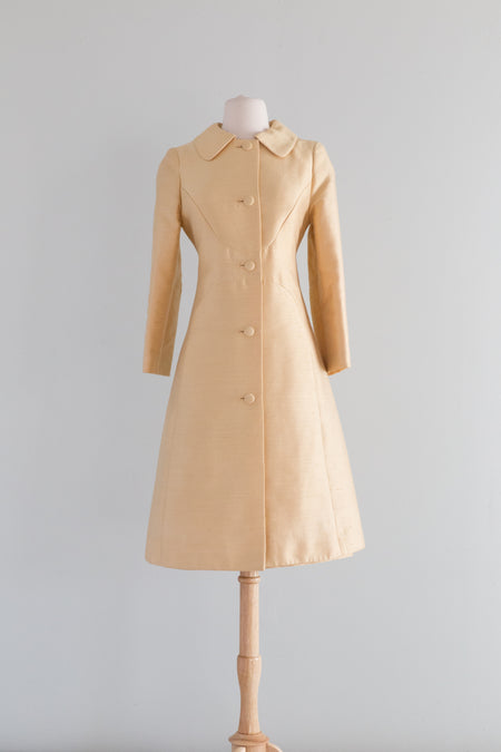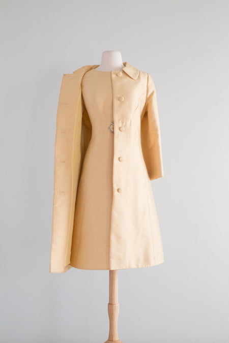 Chic 1960's Butter Yellow Shantung Silk Dress & Coat Set / Medium