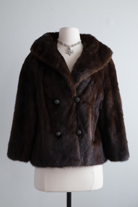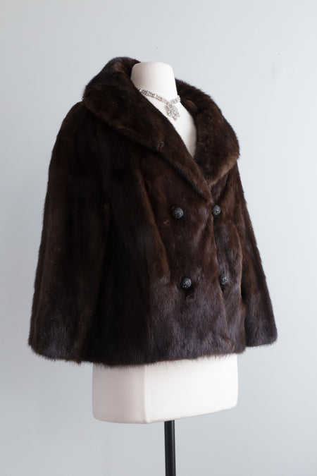 Exceptional 1960's Chocolate Mink Jacket With Jewel Buttons / Medium