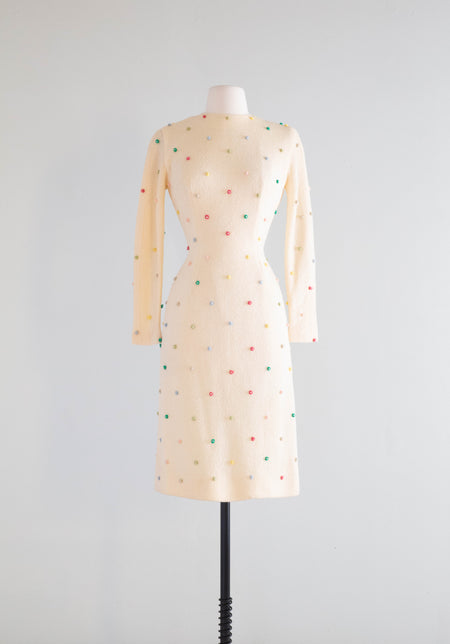 Fabulous 1950's Candy Knit Wiggle Dress By Anne Fogarty / XS