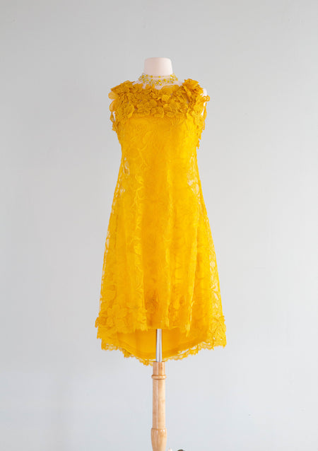 Sold Out Fabulous Late 1950's Herbert Sondheim Green & Gold Silk Rose Print Cocktail Dress / ML $398.00