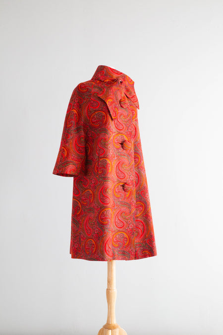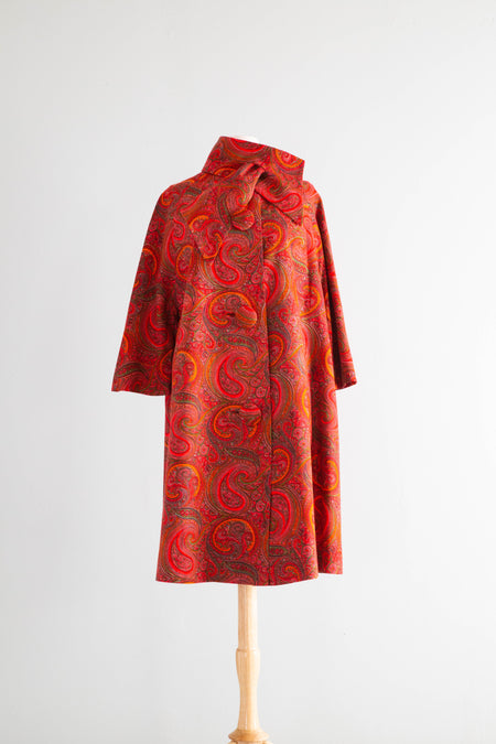 Fabulous Psychedelic Paisley Print Swing Coat By Marguerite Rubel / ML
