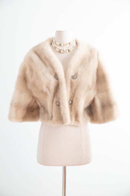 Sold Out Layaway Final: Exquisite 1960’s Platinum Blond Mink Jacket With Opalescent Buttons / M $400.00
