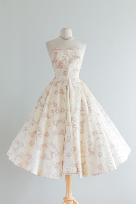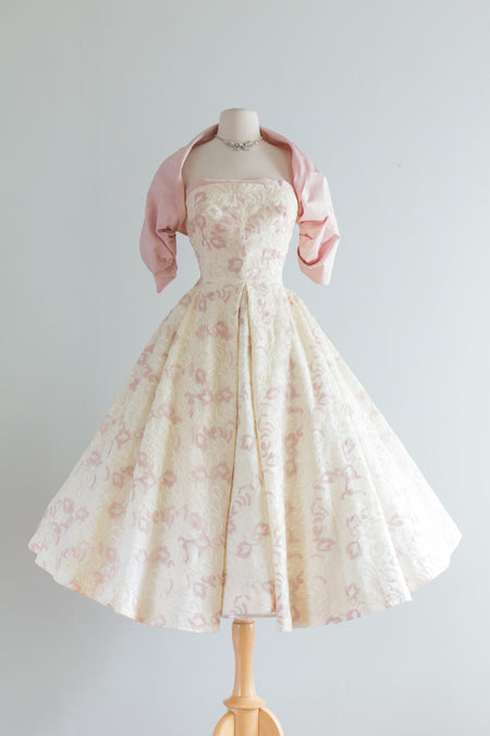 Sold Out Exquisite 1950's Embroidered Ivory Silk Organza Strapless Party Dress with Bolero / Waist 24 $425.00