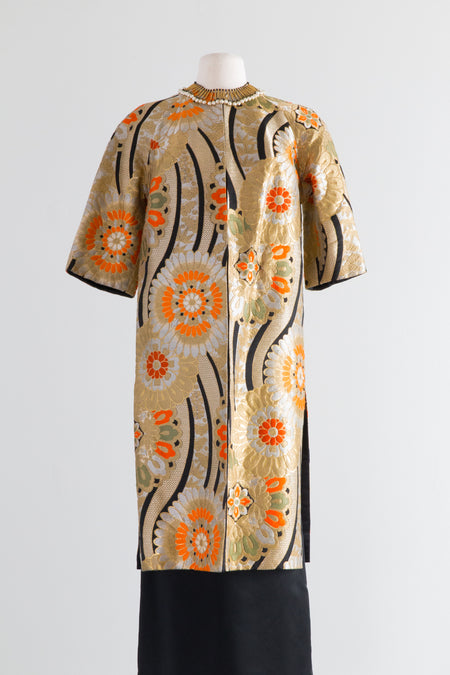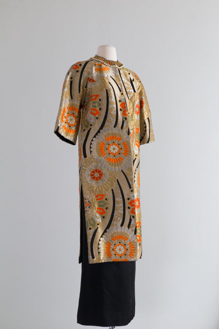 Fabulous 1960s Metallic Gold Japanese Evening Coat / Small