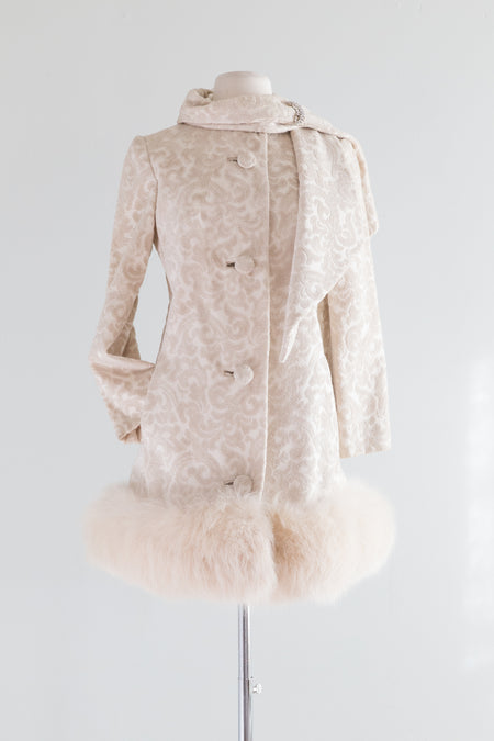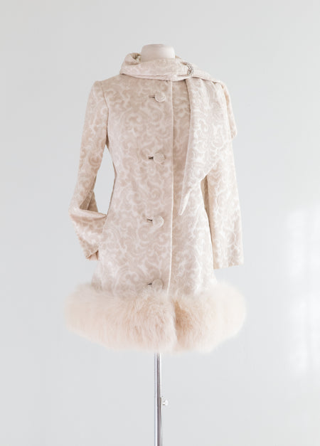 Fabulous 1960's Lilli Ann Tapestry Coat With Fur Trim / Small