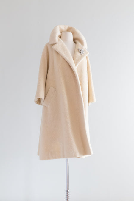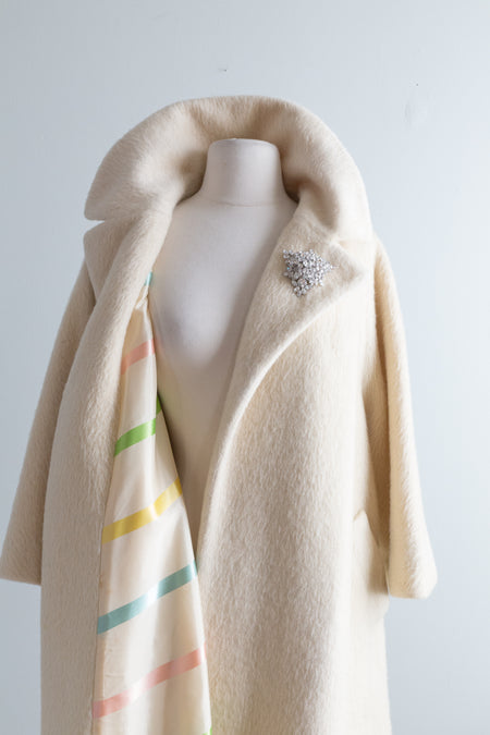 Late 1950s Ivory Lilli Ann Swing Coat With Candy Striped Lining / Medium