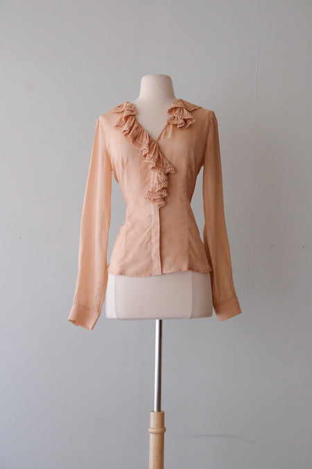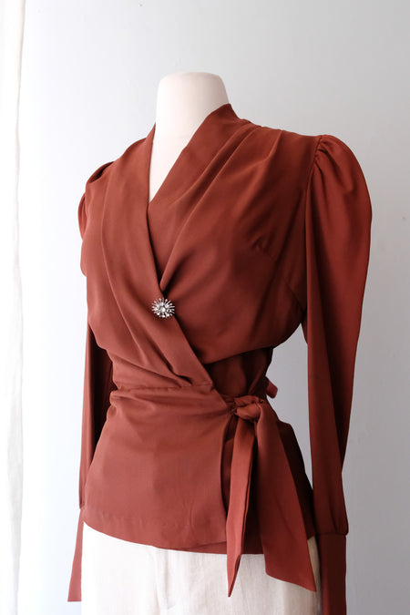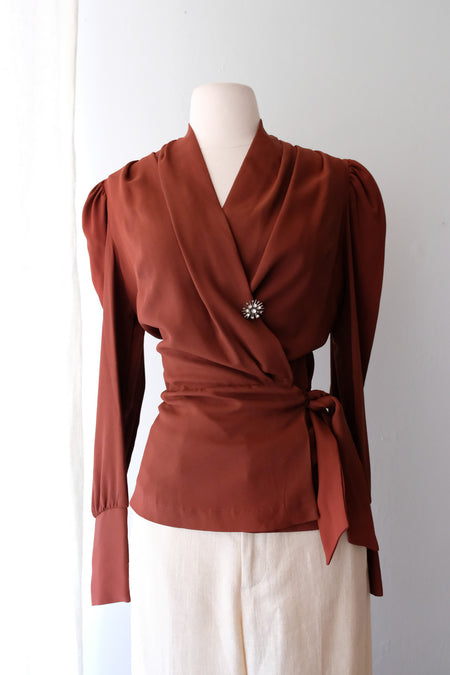 Ethereal 1930's Silk Chiffon and Lace Wrap Top / Small