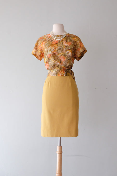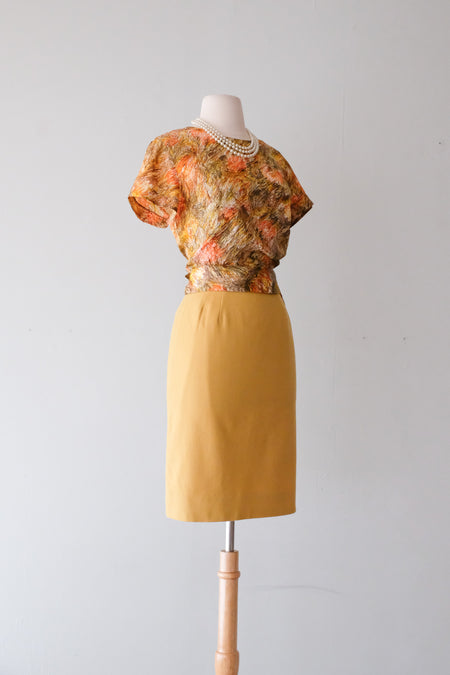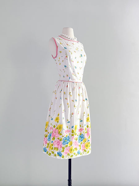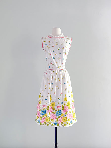 Sweet 1960's Floral Cotton Border Print Sundress / Sz ML