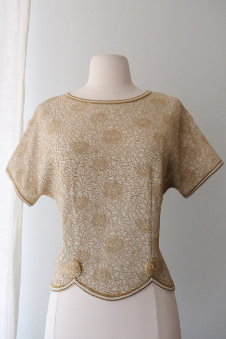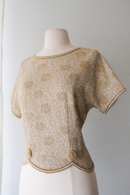 Glamorous 1950's Ivory & Gold Lurex Knit Top / Sz ML