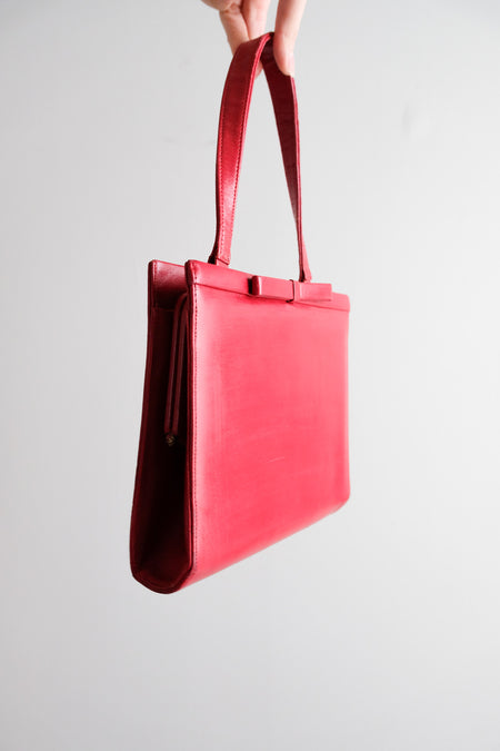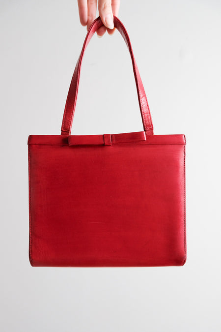 Adorable 1960's Red Square Bow Structured Leather Handbag