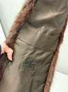 Wrap yourself in pure vintage luxury with this breathtaking mahogany mink evening stole, an opulent, full-length piece measuring an impressive 73 inches from end to end. Crafted from exceptionally plush, silky-soft mink pelts in a rich, deep mahogany tone, this wrap drapes over the shoulders with the kind of volume and presence reserved for true Old Hollywood royalty. The fur displays lush density, luminous sheen, and beautifully matched pelts, creating an uninterrupted sweep of warmth and glamour. The interior is lined in a smooth chocolate silk and finished with a beautifully embroidered monogram—an elegant nod to its bespoke heritage. The wrap also features discreet interior arm bands for effortless, secure wear.