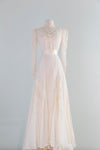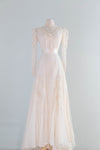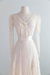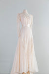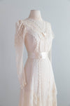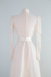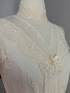 Romantic 1970's Edwardian Inspired Lace & Swiss Dot Wedding Gown In Ivory Blush / M