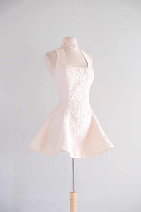 Sold Out Vintage Early 1990's Ivory Halter Pintuck Mini Dress by Barbaglio Cristina + Jan / SM $198.00