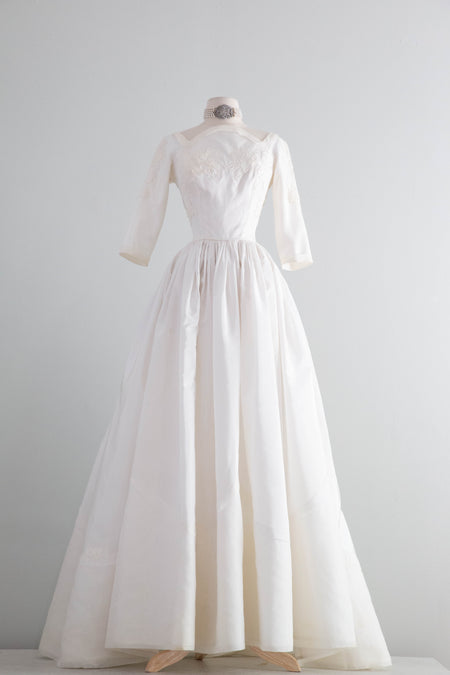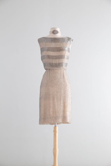 Sold Out Elegant Early 1960's Silver Glass Beaded Cocktail Dress Over Nude Illusion Silk Chiffon / SM $498.00