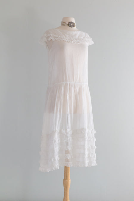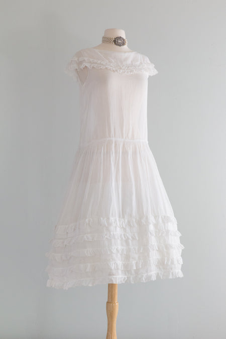 Ethereal 1920's White Cotton Tea Dress / Petite Small