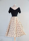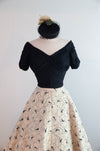 Iconic 1950's Claudia Young Cocktail Dress With Novelty Print Felt Skirt & Draped Bodice / Small