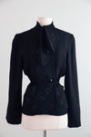 1940s Tilly Heitner Black Forstmann Wool Jacket with Beaded Detail and Carved Glass Button