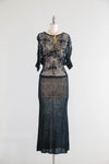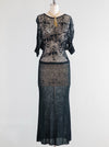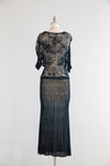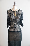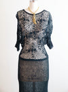 Exquisite 1930’s Hand-Crocheted Forest Green Evening Dress / m