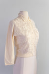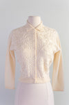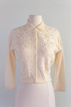 Marvelous 1950's Ivory Pearl Soutache Cashmere Cardigan By Hadley / SM