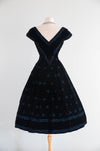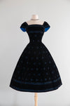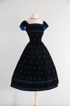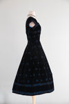 Exquisite 1950s David Hart Eyelet Velvet Cocktail Dress with Sapphire Glow / SM