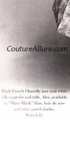 Material: French Chantilly lace, taffeta lining, netting