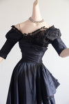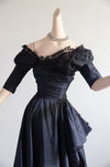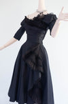 Gorgeous 1950’s Hattie Carnegie Black Silk Taffeta Cocktail Dress / Small