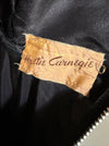 A striking asymmetric cascade of pleated ruffles descends from the waist, lending dramatic movement and balance to the design—an element reminiscent of the Parisian couture influences that inspired Carnegie’s in-house designers. The three-quarter sleeves and concealed side pockets offer both refinement and practicality, while the full internal structure—including inner stays and grosgrain waist cincher—attests to the garment’s couture-level craftsmanship.