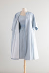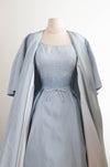 Exquisite Early 1960's Ice Blue Silk & Sequin Evening Dress and Matching Coat By Florence Lustig / medium