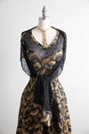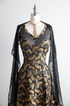 Stunning Late 1940’s Chinese Gold Brocade Evening Dress with Shawl / SM