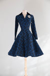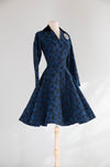 Fabulous Late 1950's Estevez Midnight Blue Brocade Party Dress / S