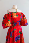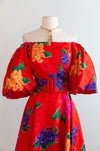 Fabulous 1980's Scarlet Floral Print Party Dress By Raul Blanco / M