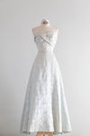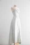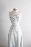 Exquisite 1950's Mirror Blue Brocade Formal Evening Gown By Robert Martin New York / S