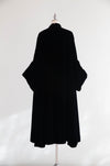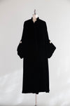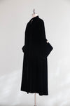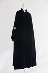 An exquisite 1950's Lilli Ann of San Francisco black velvet swing coat—an opulent, architectural masterpiece from one of America’s most collectible mid-century fashion houses. Cloaked in inky, plush velvet with a weight and drape that signal true luxury, this coat captures the sculptural elegance for which Lilli Ann was renowned.
