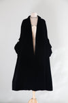 Exquisite 1950's Lilli Ann Black Velvet Swing Coat With Rhinestone Cuffs / ML