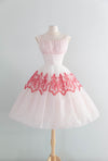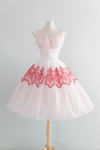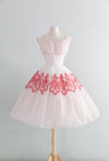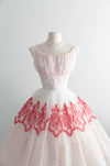 The Sweetest Late 1950's Red & White Swiss Dot Flocked Cupcake Party Dress / S