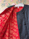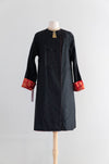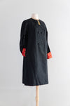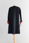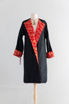 One of my favorite pieces in the shop! Stunning early 1960's scarlet red Chinese silk evening coat with fully reversible black silk interior. Impeccably crafted and in pristine condition, featuring side pockets, covered buttons and long cuffed sleeves. In excellent condition, freshly dry cleaned and ready to wear.