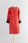 Stunning Early 1960's Scarlet Red Chinese Silk Reversible Evening Coat / M