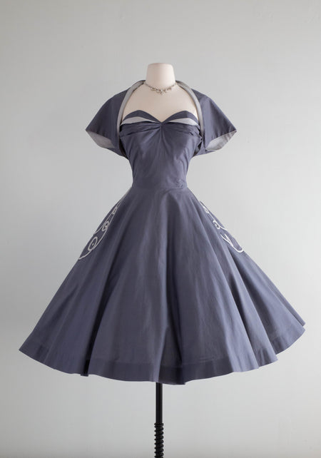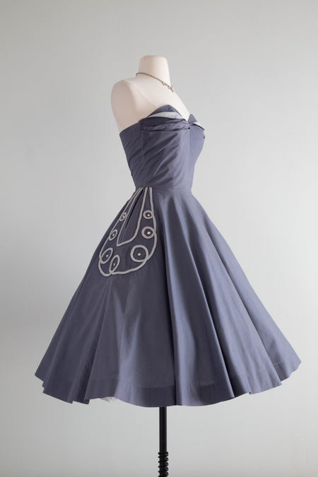 Sold Out Glamorous 1950's Mauve Polished Cotton Strapless Cocktail Dress With Pockets and Pearls / Small $248.00