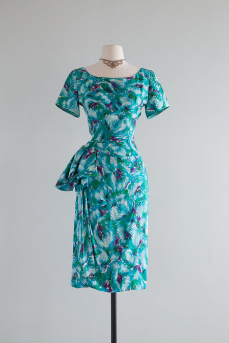 Sold Out Glamorous 1950's Miss Elliette Silk Chiffon Dress with Jacket In Avocado Green / Medium $248.00