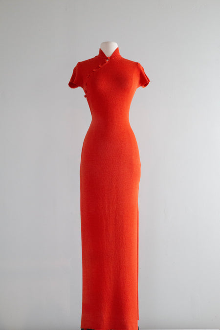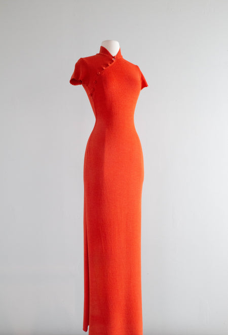 Glamorous 1960's Adolfo Cayenne Knit Cheongsam Dress / SM