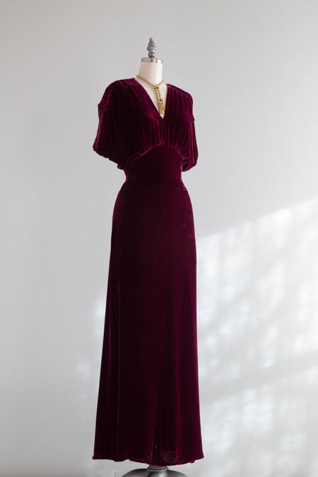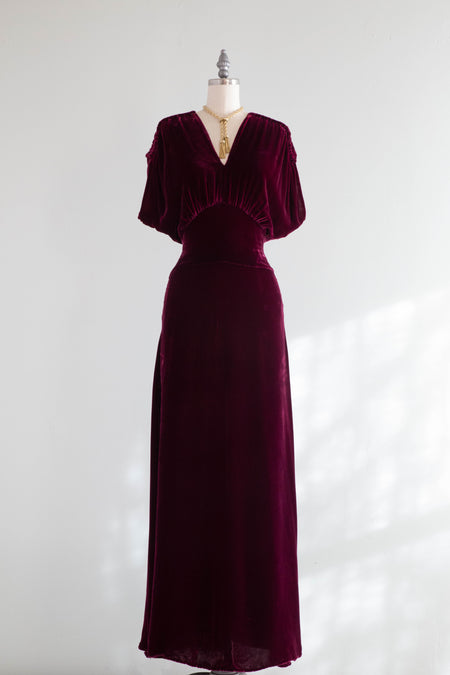 Gorgeous 1930's Silk Velvet Evening Gown In Deep Fuchsia / M