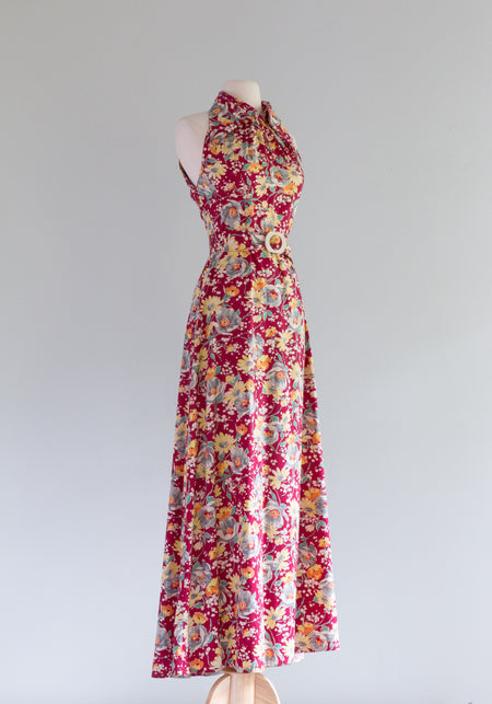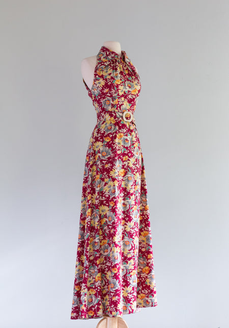 Gorgeous 1930's Cotton Floral Gown With Matching Jacket / Small