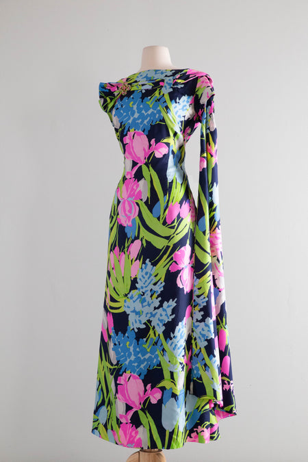 Sold Out Rare 1920's Couture Evening Dress Cobalt Silk Lame' & Pearl Festoons and Tassels / Small $848.00