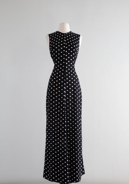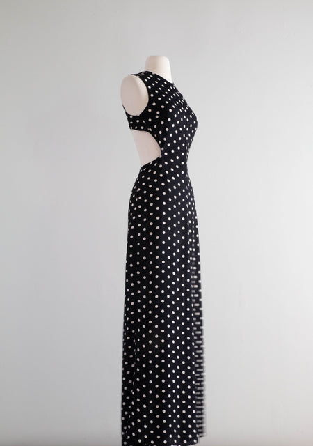 Sexy 1970s Style Rayon Backless Polka Dot Maxi Dress / XS
