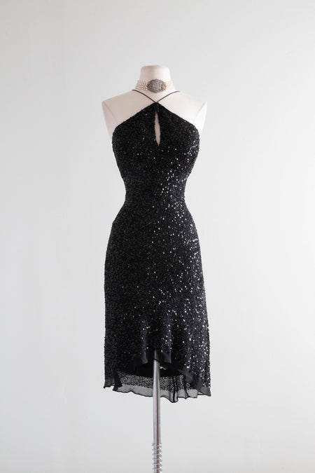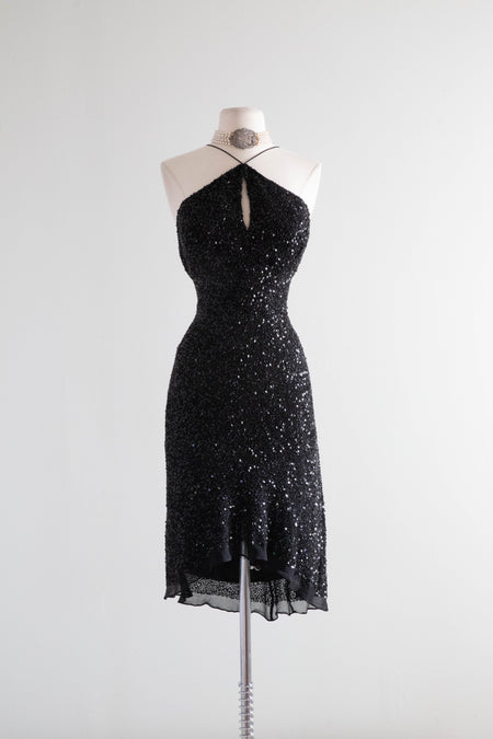 SEXY 1990's Black Beaded Bias Cut Halter Dress / M