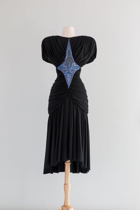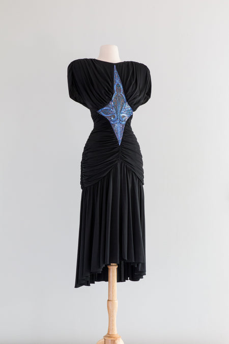 Sexy Vintage 1980's Body Con Sapphire Sparkle Dress / SM