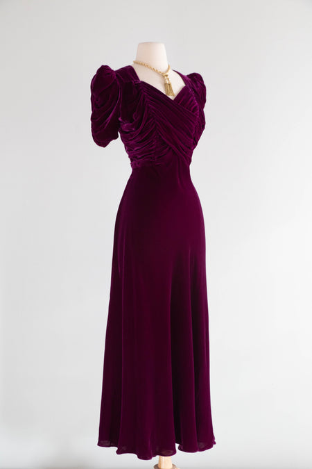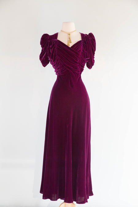 Stunning 1930's Silk Velvet Evening Dress in Sugar Plum Violet / M