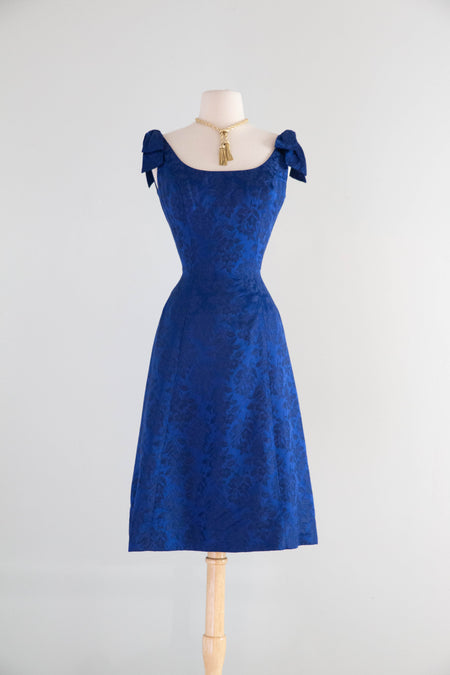 Stunning Late 1950's Sapphire Blue Cocktail Dress By Estevez / S