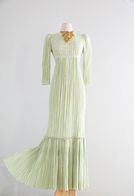 Sublime 1980's Mary McFadden Celadon Crystal Evening Gown / SM
